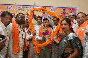 इस अवसर पर पदाधिकारी एवं कार्यकर्ताओं द्वारा महामाला के साथ मंत्री देवांगन का अभिनंदन किया गया।