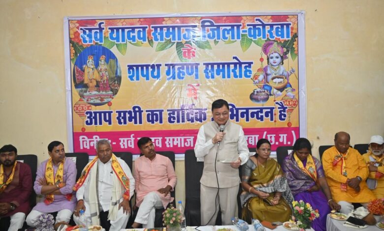 कोरबा – कोरबा. बालकोनगर के न्यू शांति नगर स्थित राधाकृष्ण मंदिर परिसर में सर्व यादव समाज के नवीन पदाधिकारियों एवं कार्यकारिणी के शपथ ग्रहण समारोह में कोरबा विधायक एवं छत्तीसगढ़ शासन के कैबिनेट मंत्री लखन लाल देवांगन, चंद्रपुर के विधायक  रामकुमार यादव, महापौर संजू देवी राजपूत की मुख्य आतिथय में संपन्न हुआ।